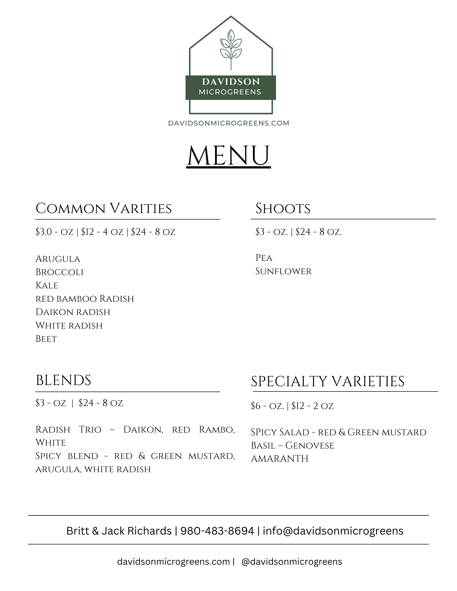 - While we work to provide an online ordering system, please email your order to info@davidsonmicrogreens.com.